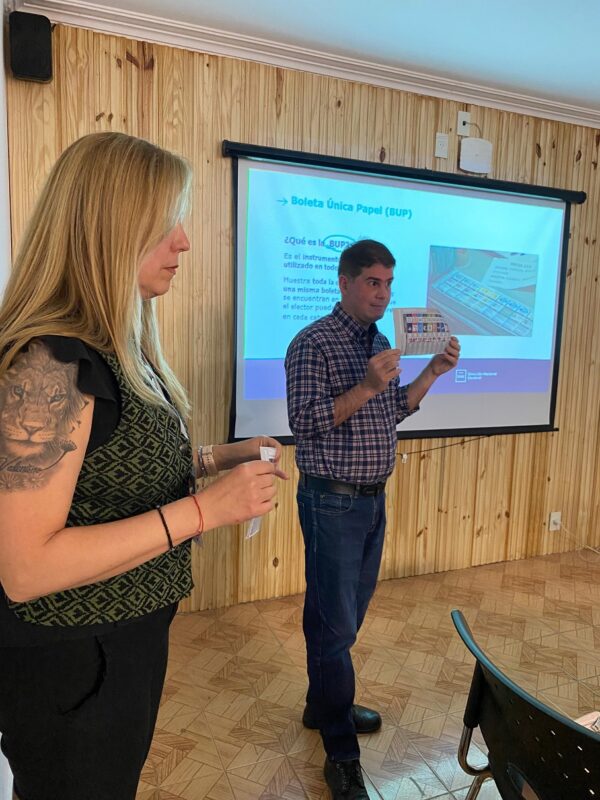 Las instancias de formación estuvieron a cargo de los capacitadores de la Dirección Nacional Electoral, Matías Petrasso y Verónica Sindoni, quienes profundizaron en los aspectos prácticos y técnicos de esta nueva modalidad de votación.