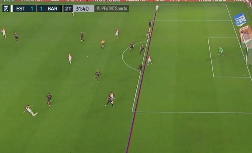 A los 22 minutos, otra gran polémica que terminaba en el 2-1 de Estudiantes: tras un centro del lateral Meza, Carrillo asistió de cabeza el zurdazo de arremetida de Palacios que infló la red pero el línea sancionó posición adelantada. ¿Fue? Tanto Carrillo (habilitado por el pie izquierdo de Jappert) y Palacios parecían estar en posición lícita. Después de cuatro minutos de revisión, Arasa marcó posición adelantada (se recuerda que para las sanciones del offside los árbitros principales no revisan las jugadas, esperan el trazado de la tecnología). Pero las líneas del VAR trazadas desde las oficinas de Ezeiza y replicadas por la transmisión no aclararon la situación. Todo lo contrario.