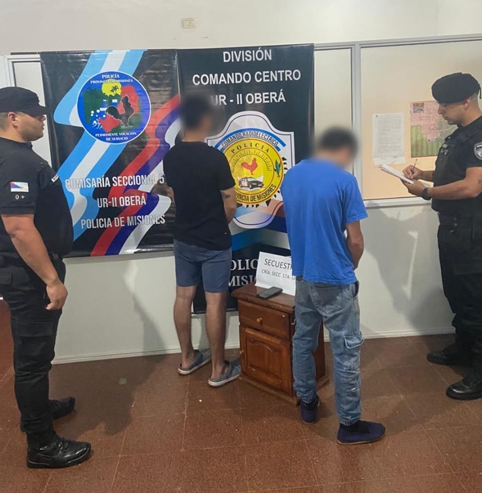 En otro hecho, efectivos de la Seccional Quinta y del Comando Centro detuvieron a dos jóvenes de 22 y 23 años acusados de arrebatarle el celular a una mujer de 60 años sobre la avenida Yerbal Viejo. Mediante cámaras de seguridad, los agentes identificaron a los sospechosos y los localizaron en el barrio Cien Hectáreas. En poder de uno de ellos se encontró el teléfono robado, un Xiaomi Note 11, que fue devuelto a su propietaria. Los detenidos permanecen a disposición del Juzgado de Instrucción N°2 de Oberá.