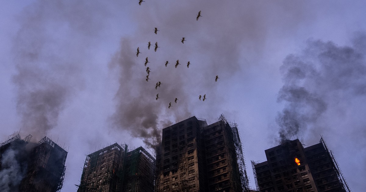 Fuego y humo envuelven las torres en Hong Kong. Foto: Reuters