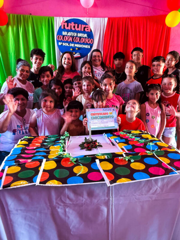 Durante 2025, la Red de Bibliotecas Barriales Futura sostuvo más de 60 horas semanales de actividades educativas en tres barrios de Posadas, acompañando a alrededor de 150 niños y niñas y a sus familias. Este trabajo, anclado en la cercanía territorial, se apoya en promotoras educativas formadas en los propios barrios, en articulación con instituciones comprometidas con el desarrollo humano y comunitario.