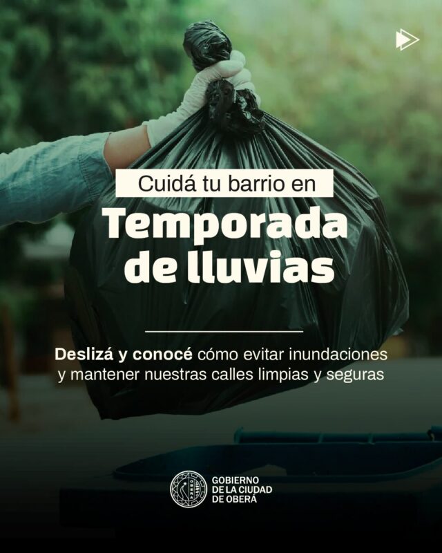 Con el objetivo de prevenir inundaciones y mantener las calles limpias y seguras, el Gobierno de la Ciudad de Oberá recuerda a los vecinos la importancia de seguir una serie de recomendaciones durante la temporada de lluvias.