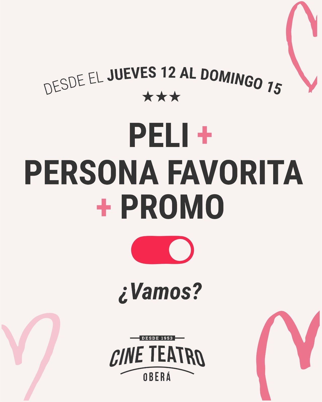 En el marco del Día de los Enamorados, el Cine Teatro Oberá lanzó una propuesta especial para quienes buscan compartir una salida distinta. Del jueves 12 al domingo 15 de febrero, el Espacio INCAA ofrece promoción 2×1 en entradas y una cartelera que combina estrenos familiares, cine de terror, producciones nacionales y dramas internacionales.