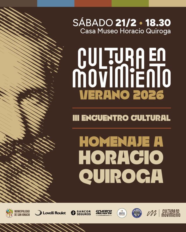 Poniendo una vez más a la “Cultura en Movimiento”, se desarrollará el homenaje a Horacio Quiroga en torno al aniversario de su fallecimiento. La cita será el sábado 21 de febrero en la casa del escritor en San Ignacio, con premiaciones, reconocimientos, números artísticos y nuevo servicio de gastronomía.