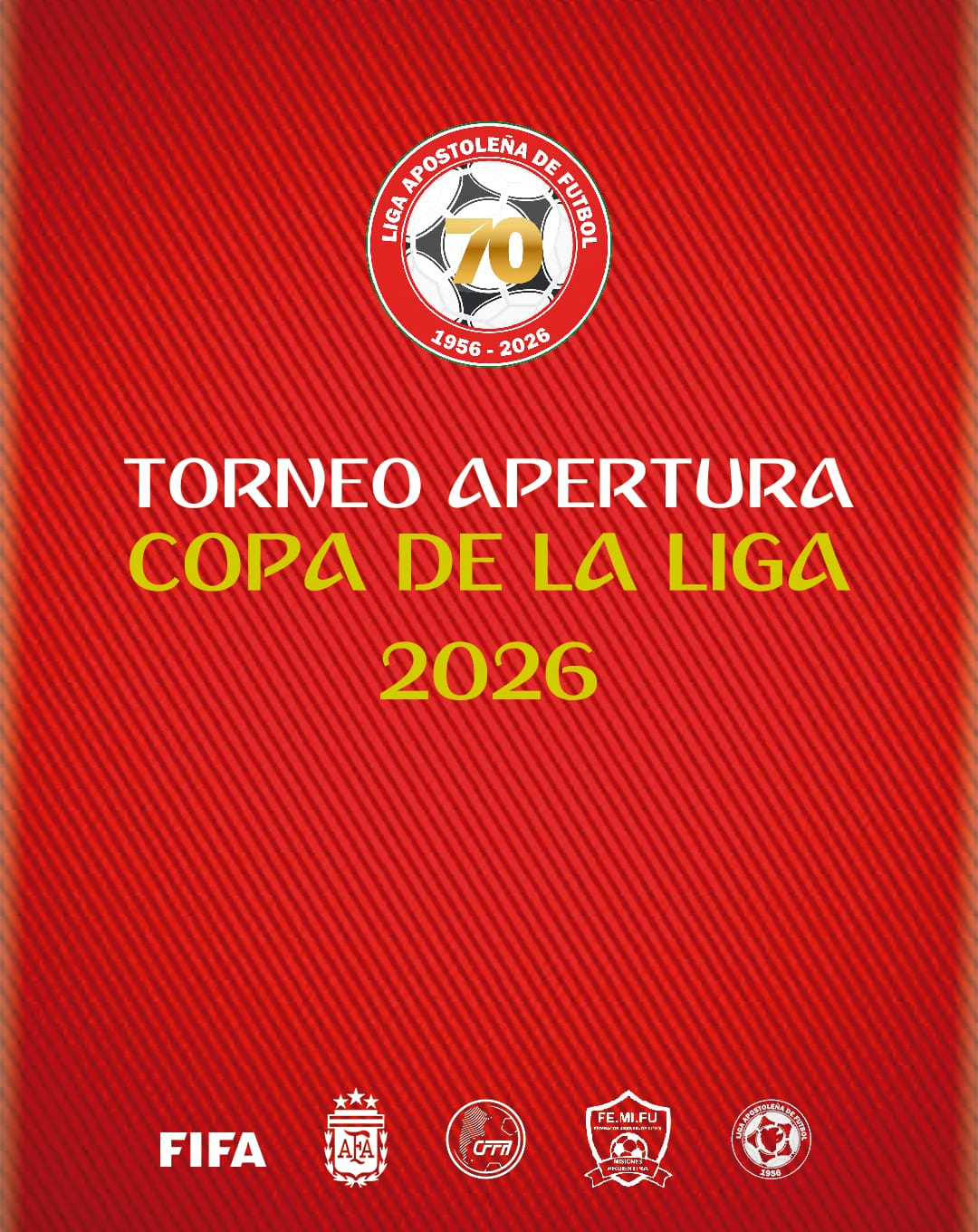 La Liga Apostoleña de Fútbol presentó oficialmente el Torneo Apertura 2026 – Copa de la Liga, en el marco de un año muy especial en el que la institución celebra sus 70 años de creación (1956-2026).