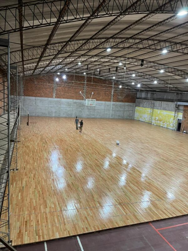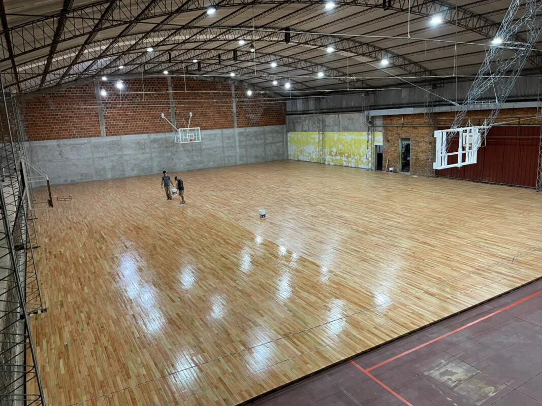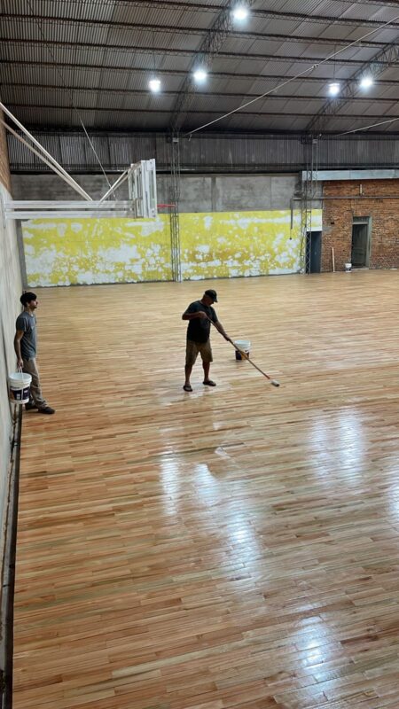 Fueron varias semanas de intenso trabajo comprometido, no solamente por la gente de Siglo XXI, sino por toda la comunidad local. Porque la colocación del parquet significa un importante crecimiento para el desarrollo social y deportivo de una comuna que respira basquet. La cancha está finalizada y ahora la obra atraviesa una de sus etapas finales: el proceso de superficie. Este tratamiento permitirá proteger la madera y darle el acabado definitivo antes de avanzar con los últimos detalles.