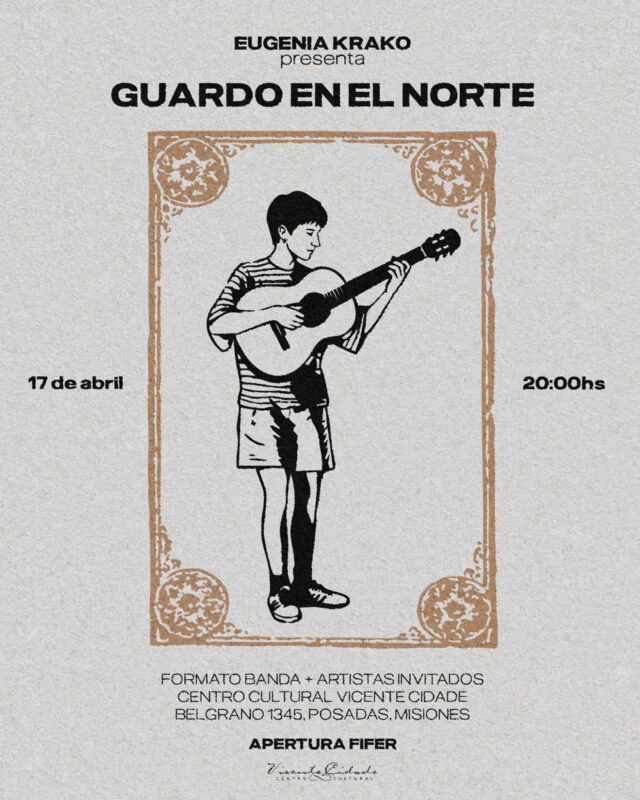 Las entradas ya están disponibles: primera preventa a $10.000 (hasta el 8 de abril), segunda preventa a $12.000 y en puerta a $15.000. También se pueden adquirir online, con el alias guardo.norte o al 3764534385. La cita es a las 20 hs del viernes 17 en el Centro Cultural Cidade, en la esquina de General Paz y Belgrano.
