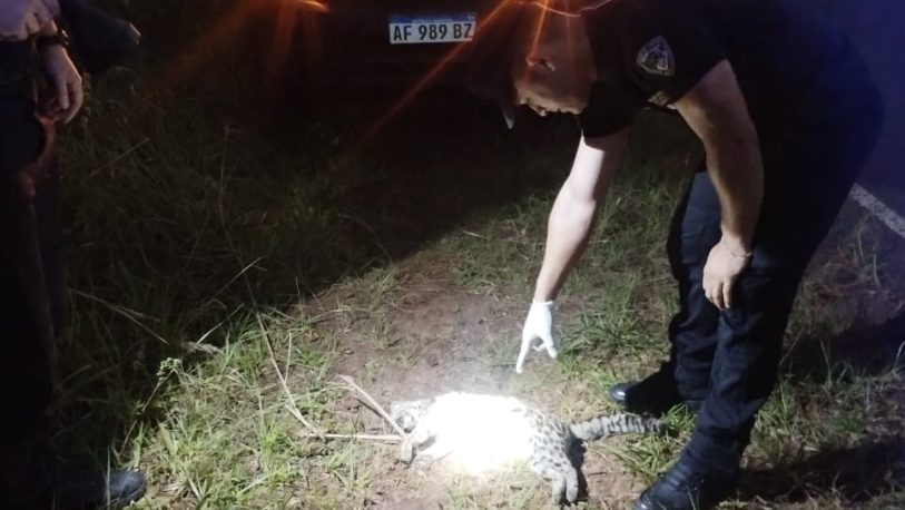 A unos 200 metros de la Unidad Penal II, los agentes confirmaron lo peor: se trataba de un ejemplar de Leopardus guttulus, conocido comúnmente como tirica, ya sin signos vitales.