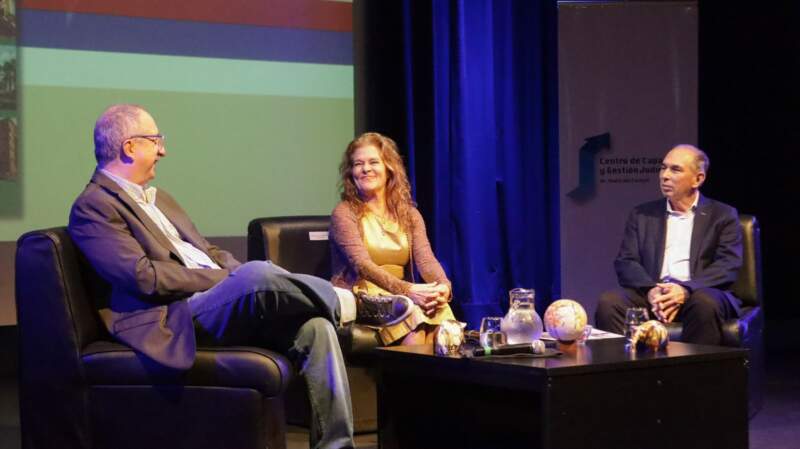 Estuvieron presentes en el Parque del Conocimiento la presidente del Superior Tribunal de Justicia y Directora Ejecutiva del Centro de Capacitación y Gestión Judicial Rosanna Pía Venchiarutti Sartori, los Ministros Roberto Rubén Uset, Cristian Marcelo Benítez, Cristina Irene Leiva, Valeria Fiore Cáceres y el Procurador General, Carlos Giménez. Venchiarutti Sartori agradeció a los invitados y especialmente al equipo del Centro de Capacitación y Gestión Judicial “la Constitución es nuestra primera columna vertebral, nosotros hemos hecho un trabajo en equipo, hay diseñadores, hay comunicadores, el trabajo fue de todos, en realidad son los artistas de esto, yo simplemente un día vine con una idea”.