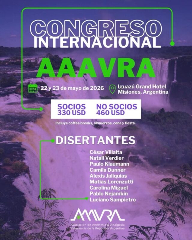 El congreso reunirá a destacados ponentes nacionales e internacionales, quienes compartirán conocimientos actualizados, experiencias clínicas y nuevas tendencias en el manejo del dolor y la anestesia en medicina veterinaria, también habrá un espacio de intercambio profesional y mucho más.